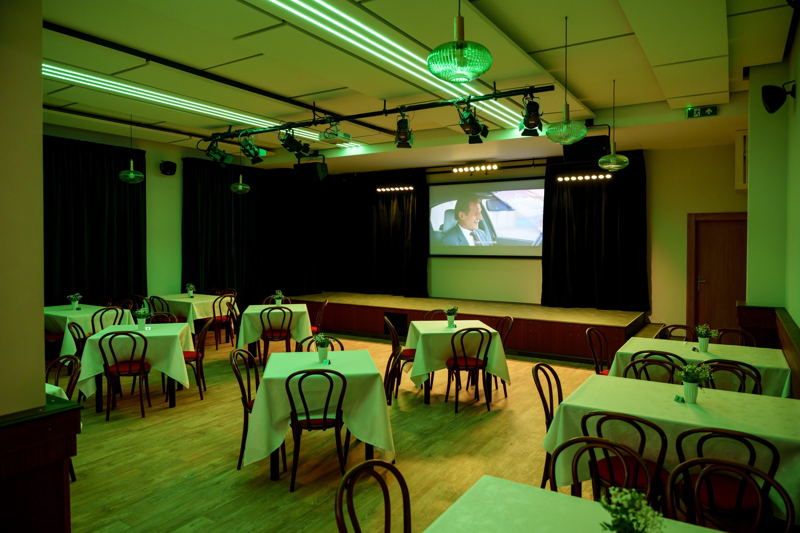 Projekční sál vhodný pro přednášky, konference, školení nebo malá divadelní představení.
